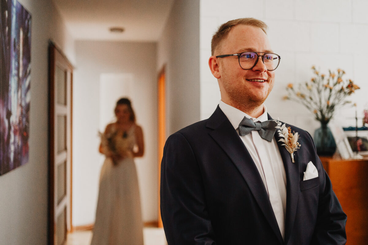 To bardzo proste ale wymaga zachowania kilku zasad. Po pierwsze – starajcie się by nie widzieć się wzajemnie w trakcie przygotowań. Po drugie – zorganizujcie miejsce. Może to być po prostu dom Panny Młodej ale polecam pomyśleć o takich wariantach jak ogród, patio, dziedziniec hotelu, czy przydomowa stodoła – chodzi o ładne ustronne miejsce, w którym poczujecie się swobodnie. Po trzecie – bądźcie sobą i nie kryjcie emocji. To będzie wyjątkowa i niepowtarzalna chwila tylko dla Was, a przy okazji powstaną pełne emocji i niezapomniane fotografie.