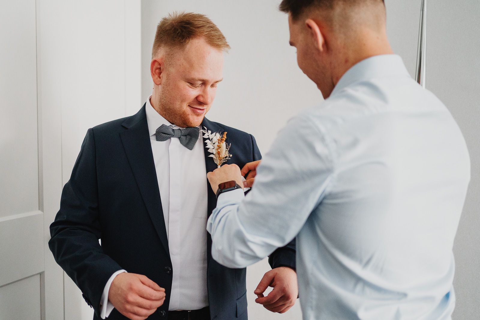 Przygotowania do ślubu - kwiatek w klapie Pana Młodego