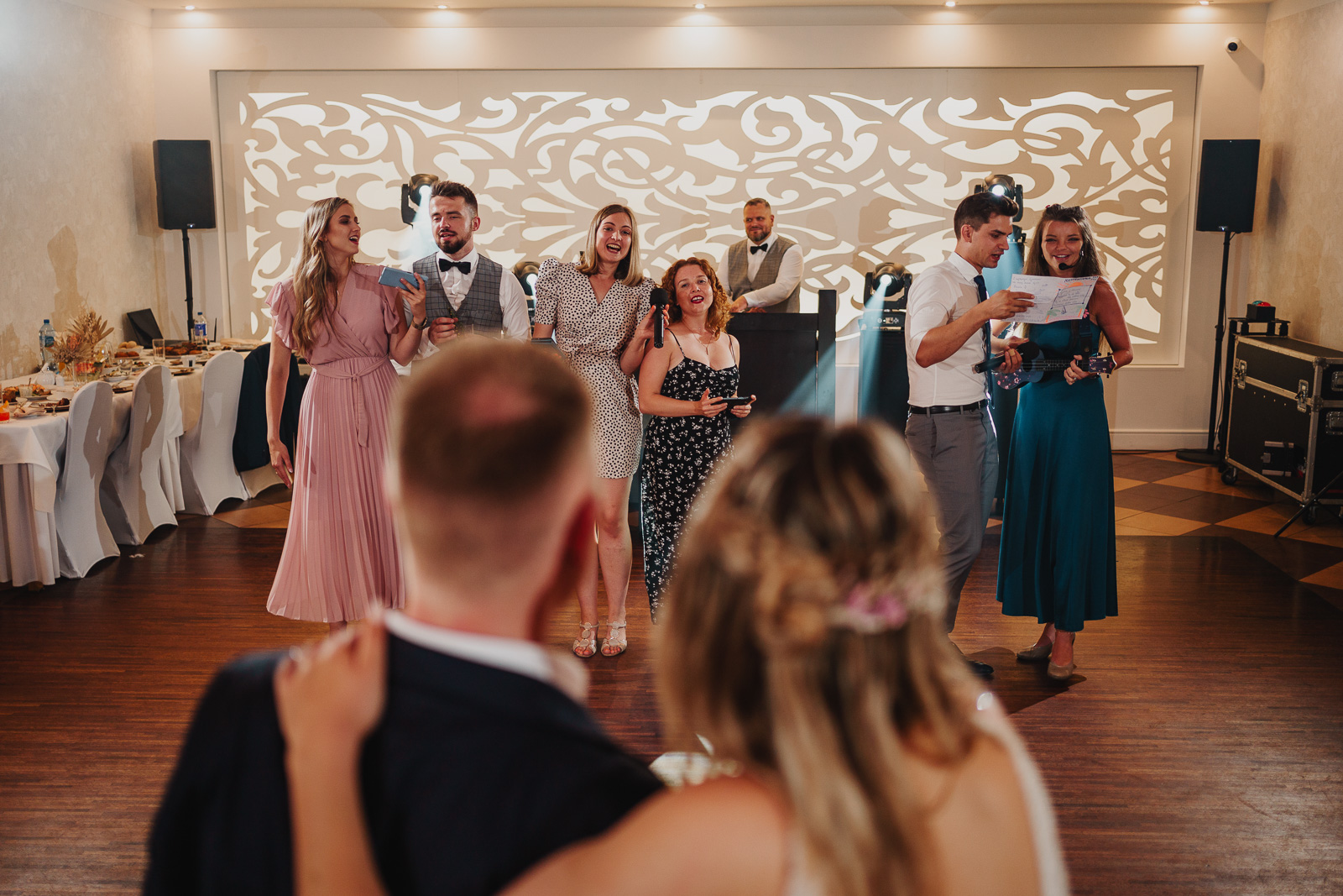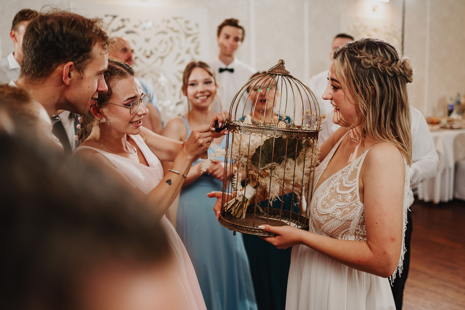 Restauracja Piaskowa w Tczewie to wyjątkowe miejsce, które z pewnością warto rozważyć podczas planowania wesela. Dzięki kilku salom o różnej powierzchni, które można dodatkowo łączyć lub dzielić w różnych konfiguracjach, Piaskowa oferuje bardzo szerokie możliwości organizacyjne. Możemy na przykład tak jak to zrobili na swoim weselu Gosia i Adrian, wydzielić oddzielne strefy biesiadną, taneczną oraz strefę chillout’u z wiejskim stołem i serwisem kawowym. Ponad to, nie zabraknie miejsca do spędzenia czasu na świeżym powietrzu.