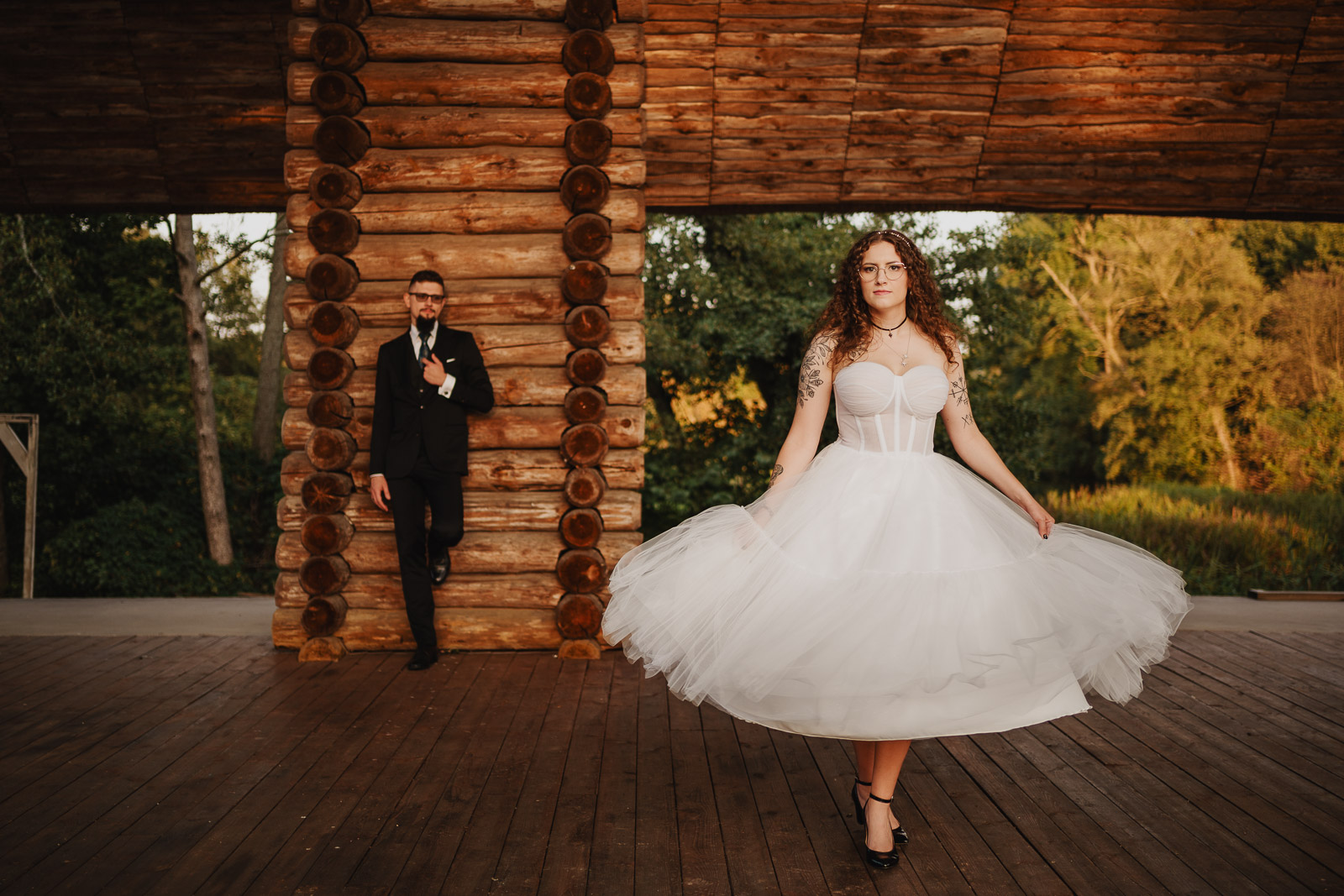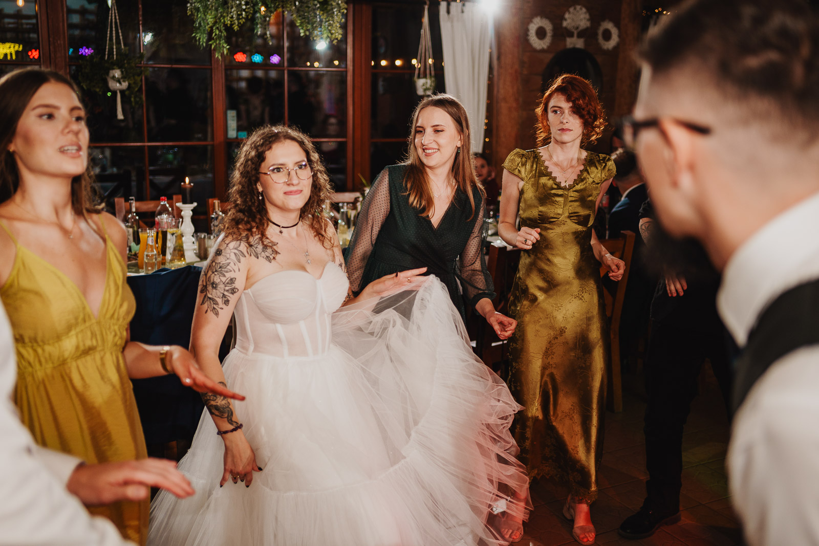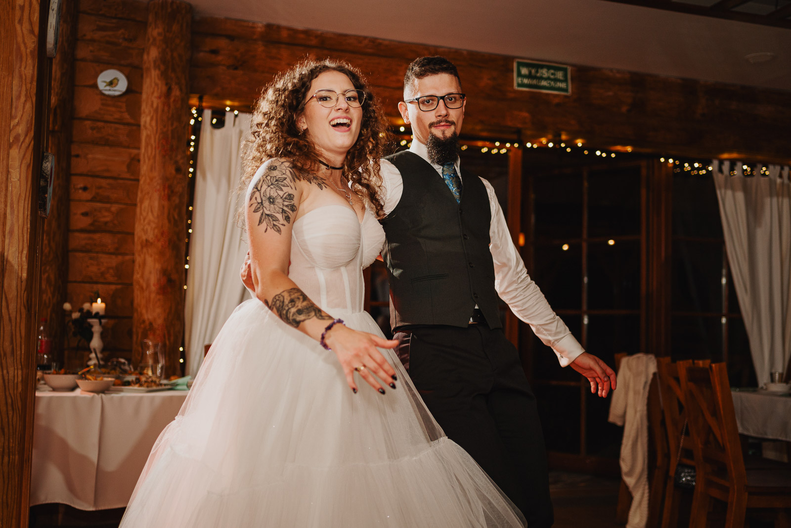 “Wychodź, druheńko, wyjdź, na wesele czas. Będą tam grały nam skrzypice, bęben, bas. A kto się nie naje, a kto nie napije Tego we dwa kije, na tego pomyje (…)” – słowa tej pieśni rozpoczęły pierwszy taniec na weselu Karoliny i Krzysztofa. Zainspirowało mnie to do zrobienia tytułowego zdjęcia, które powstało podczas sesji plenerowej kilka chwil później. Ach, co to był za ślub!