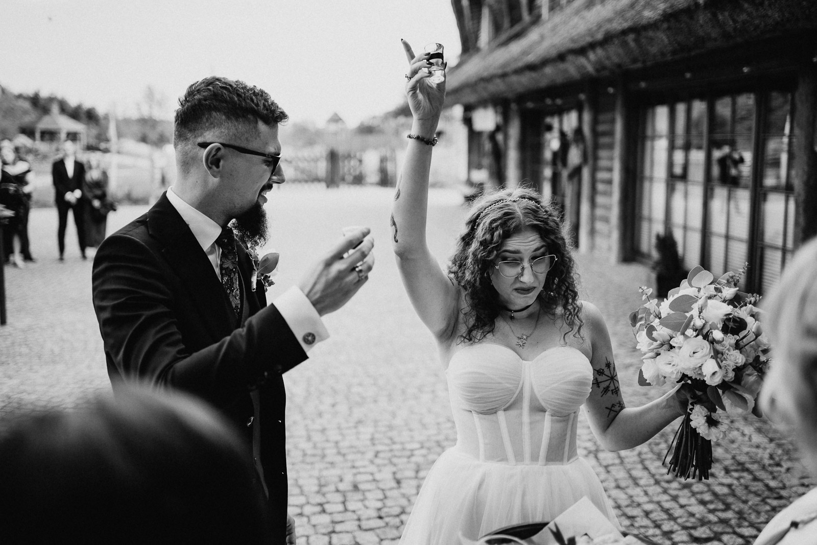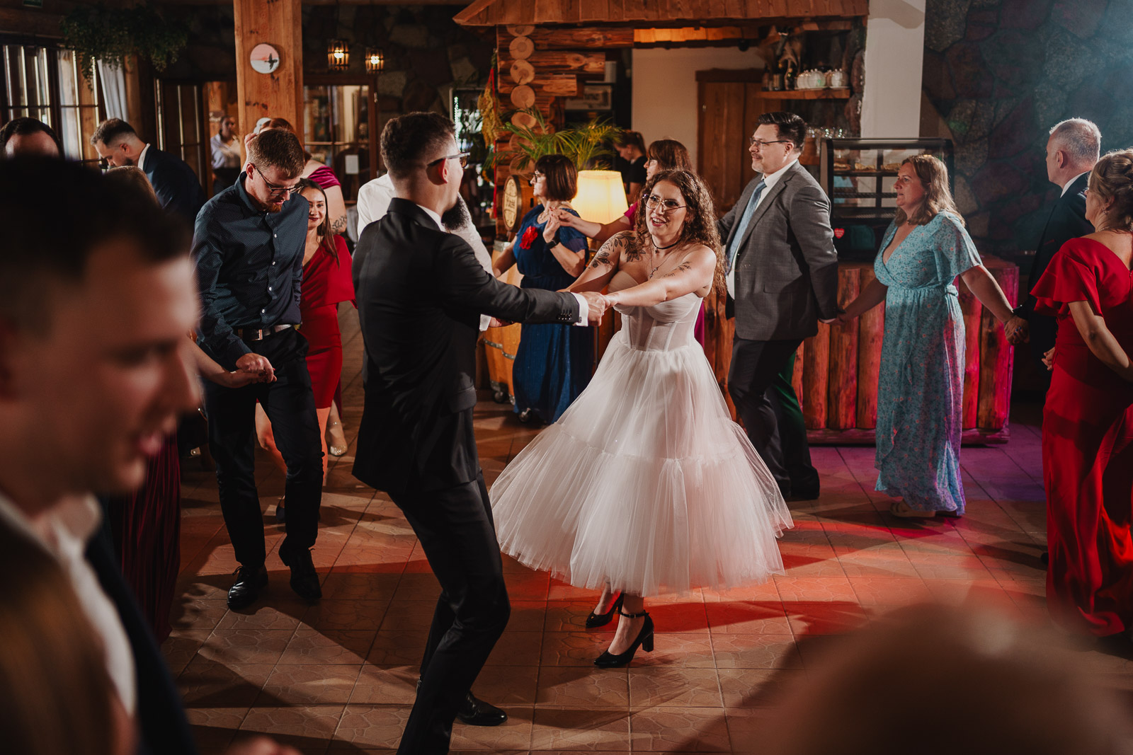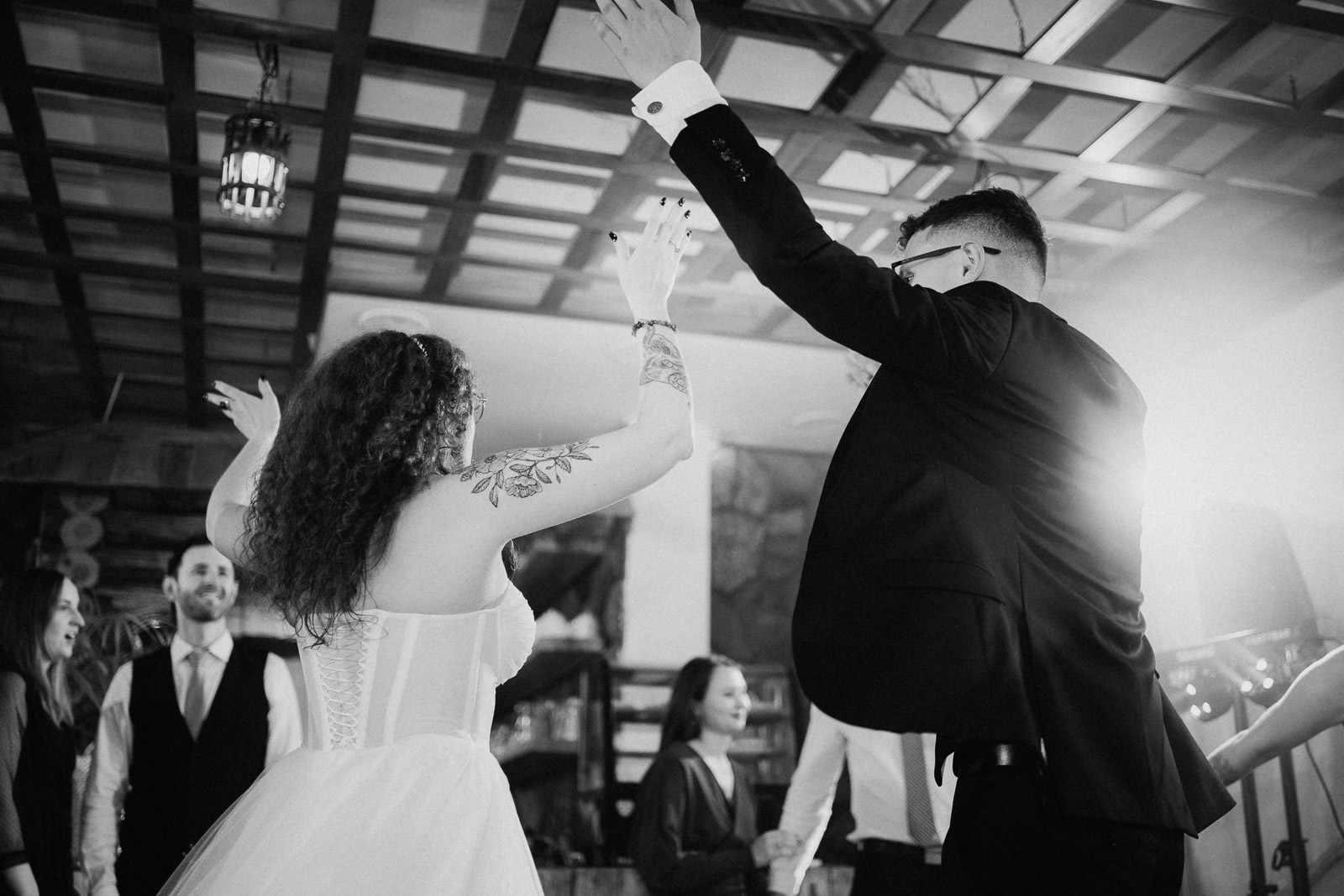“Wychodź, druheńko, wyjdź, na wesele czas. Będą tam grały nam skrzypice, bęben, bas. A kto się nie naje, a kto nie napije Tego we dwa kije, na tego pomyje (…)” – słowa tej pieśni rozpoczęły pierwszy taniec na weselu Karoliny i Krzysztofa. Zainspirowało mnie to do zrobienia tytułowego zdjęcia, które powstało podczas sesji plenerowej kilka chwil później. Ach, co to był za ślub!