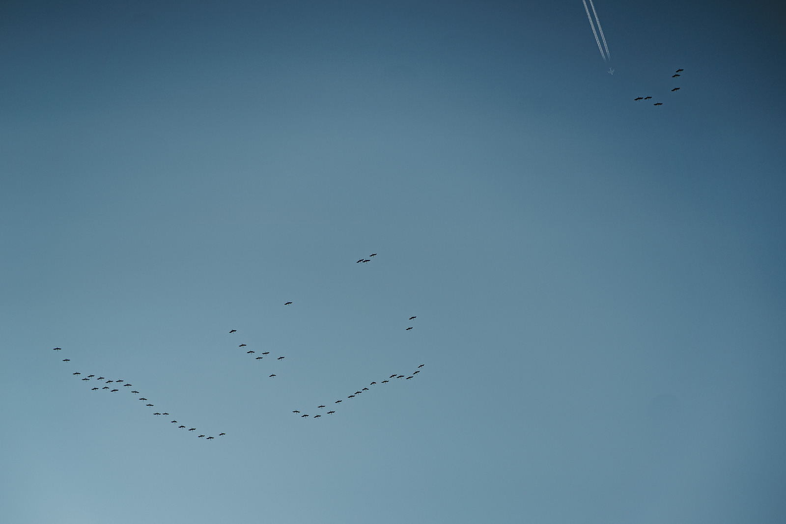 Na dźwięk żurawiego klangoru celuję mój obiektyw w niebo. Klucz ptaków leci na południe. Nagle w kadr wlatuje samolot – też ptak, tylko stalowy. To będzie zdjęcie otwarcia. Tymczasem na dole złota jesień. Piękny czas na wesele.