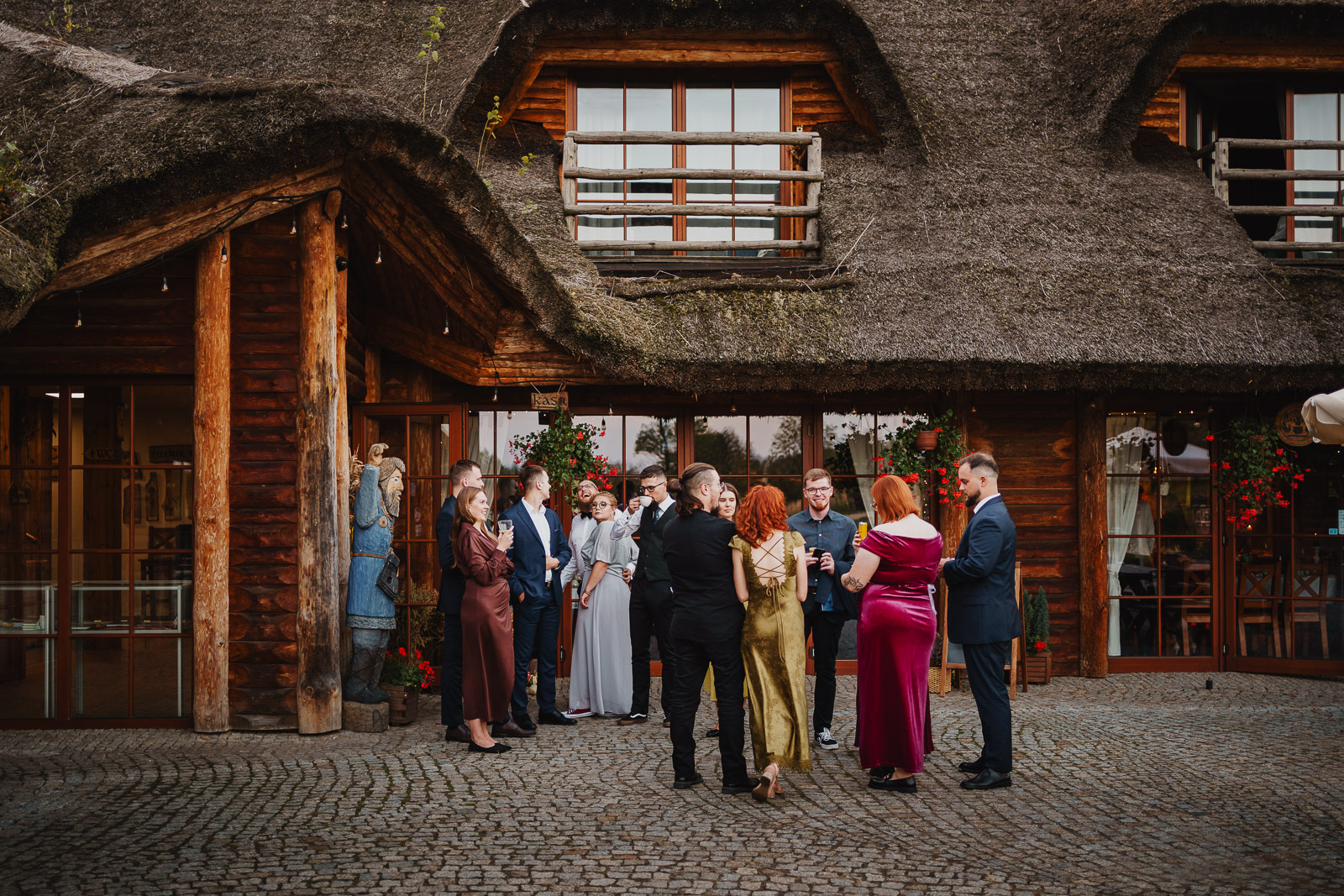 Karczma Słowiańska „Na Podgrodziu”, usytuowana na terenie Grodziska w Owidzu, to jedno z ciekawszych miejsce na organizację wesela, w jakich miałem przyjemność fotografować. Jej rustykalny klimat i tradycyjne słowiańskie akcenty tworzą niepowtarzalne tło dla tego szczególnego dnia. Wnętrza karczmy to w większości naturalne drewno w postaci bali, słupów a nawet balustrad, co bardzo dobrze koresponduje z tematyką dawnych Słowian i pozwala poczuć klimat epoki.